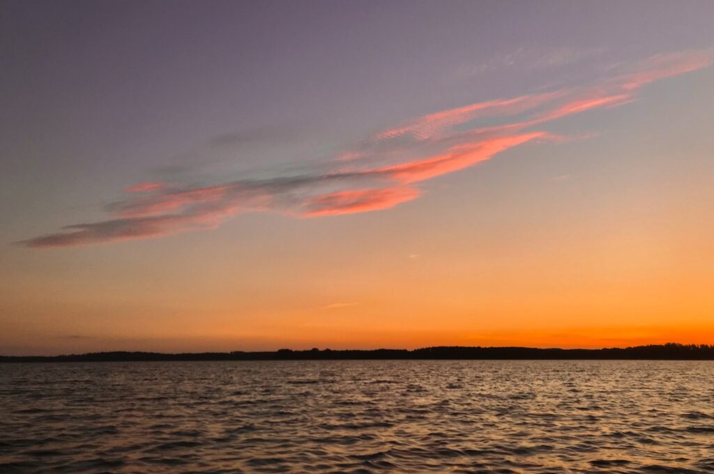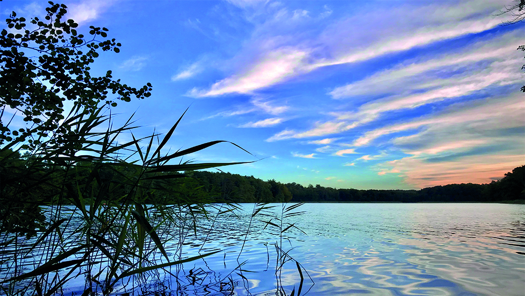 Parsteiner See im Farbenspiel vor dem Wechsel von Tag zu Nacht.