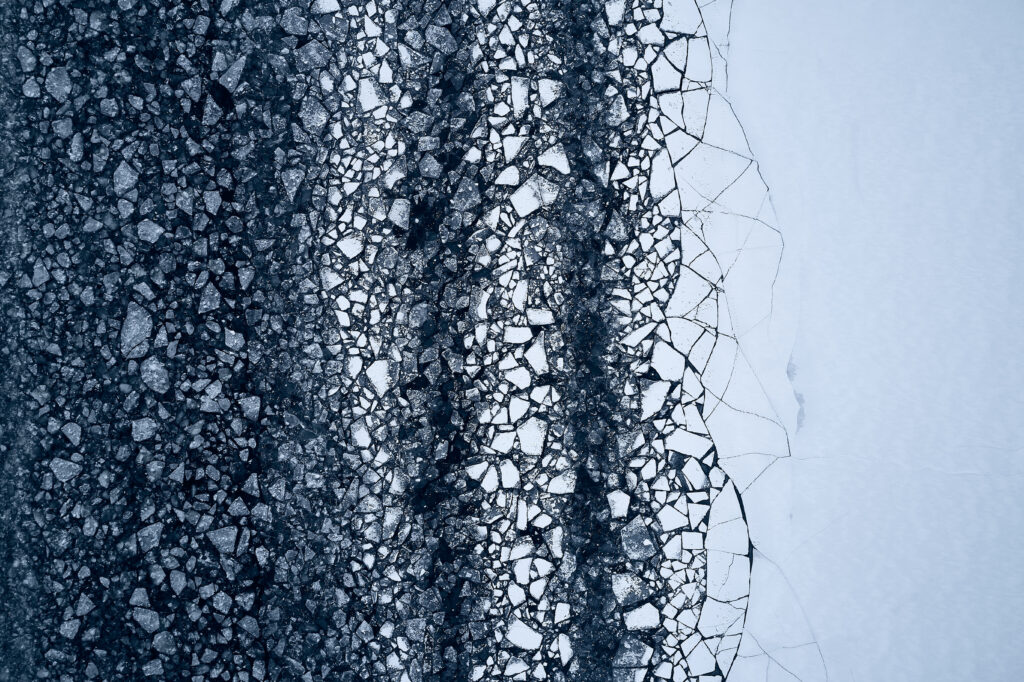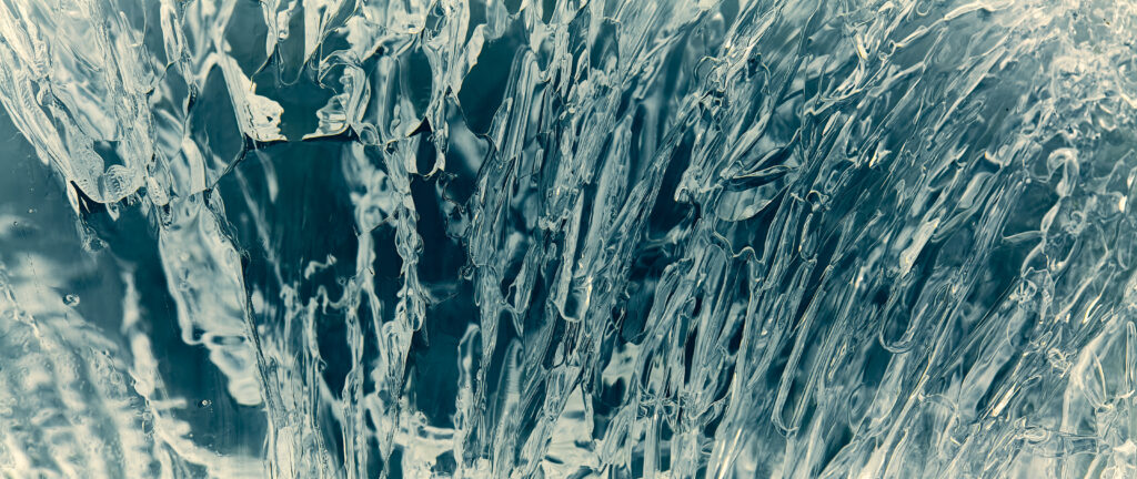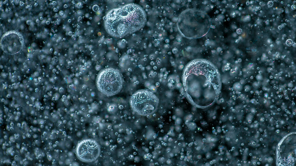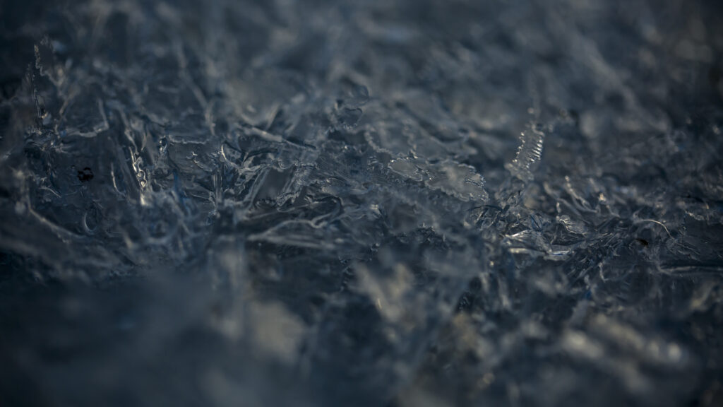 Luftblasen in gefrorenem Wasser.