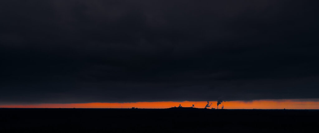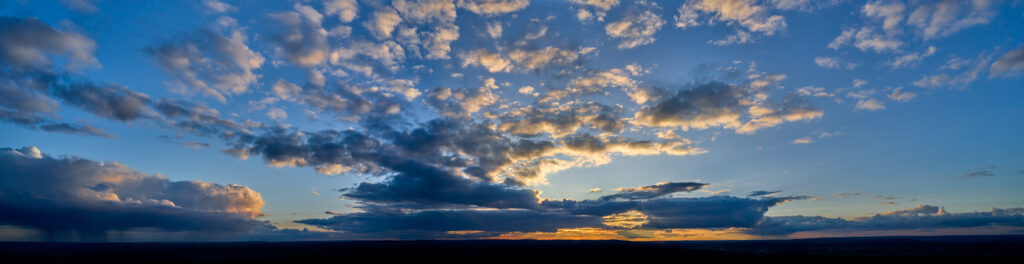 Panoramaaufnahme in Hohenwutzen mit Blick Richtung Oderberg und dem Farbenspiel der abendlichen Sonne und den Gewitter und RegenWolken.