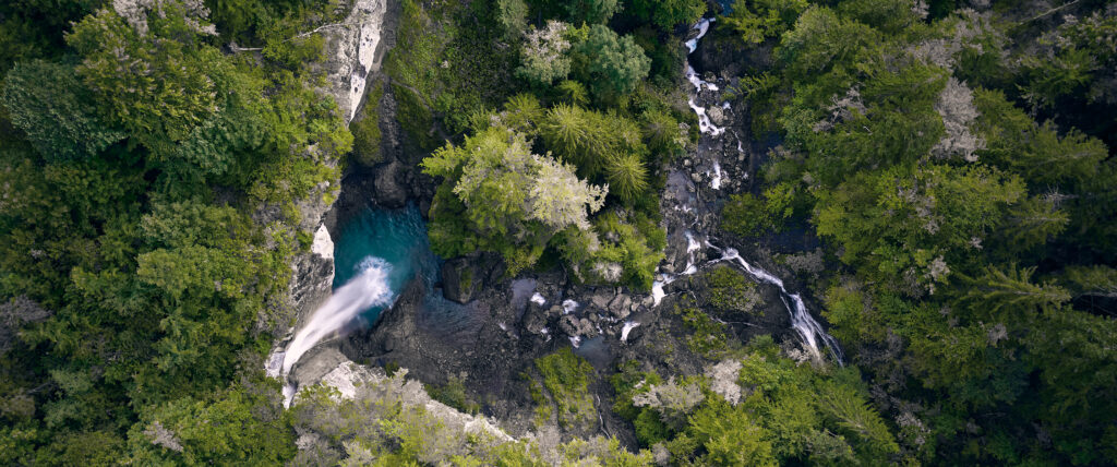 Wasserfall aus luftigen Höhen. Schweiz.